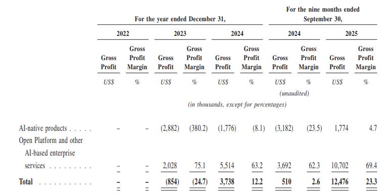 Does it matter that MiniMax is mostly consumer-powered today? Yes, but not because we care, per se; if MiniMax became a quadrillion-dollar company on the back of consumer demand, cool. But what we learn later in its IPO filing is that while its enterprise business has very attractive gross margins, its consumer business does not: