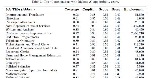 Microsoft Research dropped a fascinating paper last week that we need to digest. Using data from Bing Copilot (an AI search assistant) and labor data, Microsoft came up with a list of occupations that it considers most at risk of being consumed by AI automation.