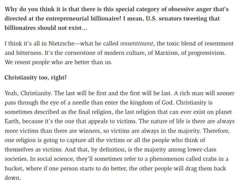 I have long wondered how the tech right — busy cozying up to faith as a sort of anti-woke vibe check — would approach the question of Christianity’s views on the poor, on providing for those without, and the moral need to care for the weak and sick1. You can’t be an aggro-capitalist and act like a Christian; you cannot selfishmaxx while following a faith that demands you care for those with less. It just doesn’t work.