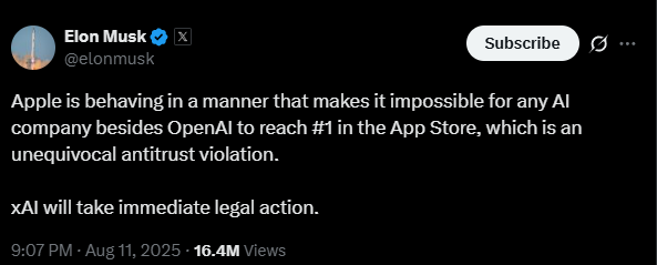 But more to the point, Musk here wants the government to intervene on his behalf to end the dastardly boosting of his rival by Tim Cook and company. OpenAI’s Sam Altman, apparently not in the mood to endure invective, responded — clapped back? — that Musk’s claim was “remarkable [given] what [he had] heard alleged that Elon does to manipulate X to benefit himself and his own companies and harm his competitors and people he doesn't like.” He then provided this link.