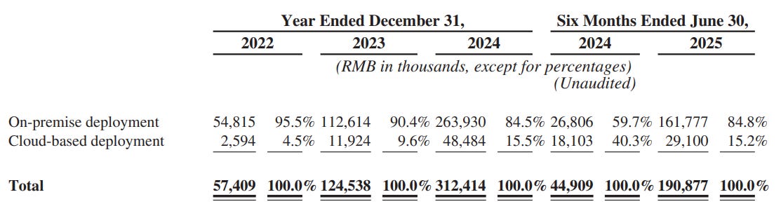 Our revenue derived from on-premise deployment increased by 503.5%, from RMB26.8 million for the six months ended June 30, 2024 to RMB161.8 million for the six months ended June 30, 2025 as we continued to provide more complex large model services to our customers and to extend our large model services to additional customers.