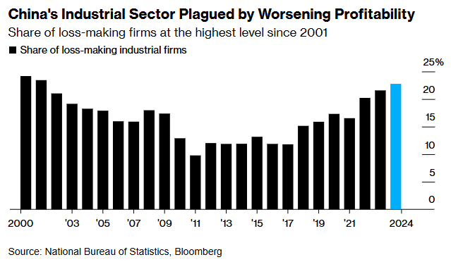 Bloomberg reports that local governments in China are currently stuck between keeping some companies alive with state incentives to avoid unemployment and lost tax revenue — figure that one out — leading to more than a fifth of firms in the industrial sector afloat long after they would have otherwise likely survived: