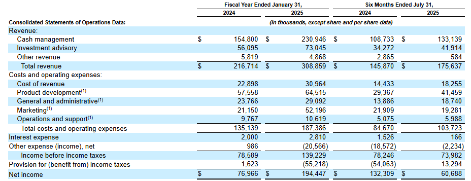 Running the numbers for you, Wealthfront grew 42% from its fiscal 2024 through its fiscal 2025, and 20% from ~H1 calendar 2024 to ~H1 calendar 2025. Despite slower growth, with a net margin of 35% the company’s loose Rule of 40 score is north of 50. That’s a spotlight on excellence, frankly.